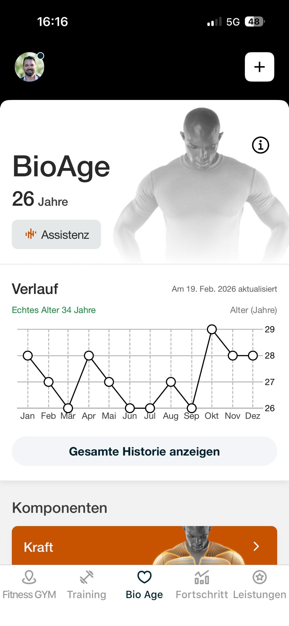 Starte deine Fitness Gym App und gehe in den Bereich „Bio Age“.