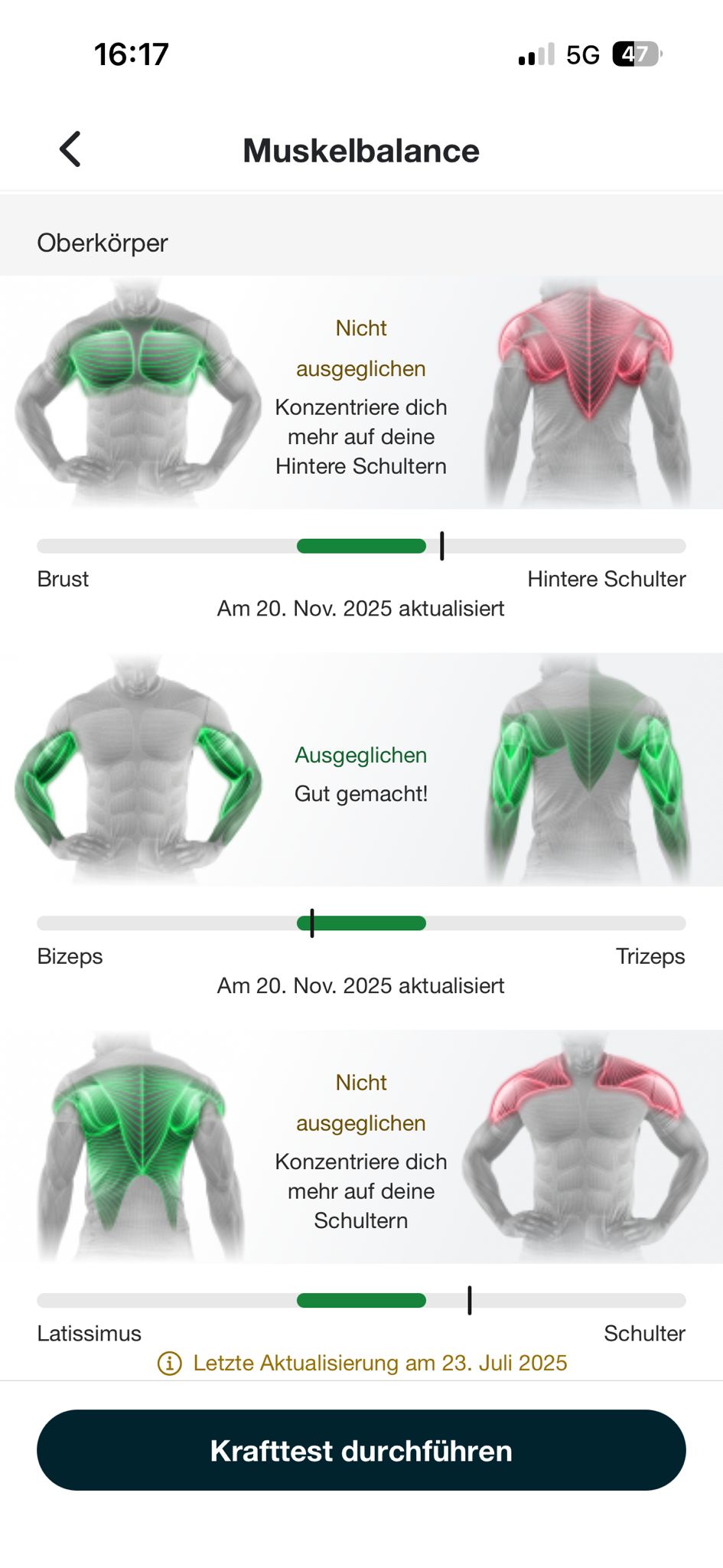 Hier erkennst du mögliche Kraftunterschiede zwischen rechter und linker Seite – eine wichtige Grundlage für ein ausgewogenes und gesundes Training.